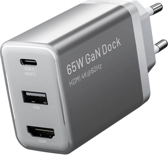A Vention GaN Switch Dock töltő elegáns és hordozható megoldás munkához és utazáshoz. A Power Delivery 65 W teljesítményű USB‑C port gyorsan feltölti a laptopot, táblagépet és telefont, az USB‑A jól jön a kiegészítőkhöz, míg a HDMI 2.0 porton keresztül akár 4K 60 Hz kijelzőt is csatlakoztathatsz a sima képért és nagyobb produktivitásért.
