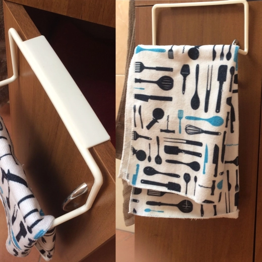 A helyét megtalálja például a konyhában, fürdőszobában vagy dolgozószobában. A konyhai munkát nehéz elképzelni konyharuha nélkül. A konyharuhákat naponta használjuk, nedves felületeket, edényeket vagy kezet törlünk velük. Ezért nagyon fontos mindig megfelelően megszárítani a konyharuhát. Ezt a problémát oldja meg a praktikus konyharuha akasztó, amelyet fel lehet akasztani a konyhabútorra, ahogyan a képen is látható.