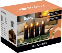 Teremts varázslatos hangulatot füst és csöpögő viasz nélkül. Ezek a fekete RUHHY LED gyertyák a meleg fehér árnyalatú, élethű lánghatással biztonságosak, energiatakarékosak, és ideálisak lámpásokba és koszorúkba helyezve, valamint otthoni dekorációnak. 2× AA elemmel működnek, hosszú üzemidőt biztosítanak, és tiszta működést nyújtanak beltérben és védett kültéri helyeken.