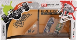 Élvezd a végtelen szórakozást ujjdeszkákkal! A készlet tartalma: 2 mini gördeszka, skatepark rámpa trükkökhöz és szerszámok a könnyű összeszereléshez. Remek választás a finommotorika fejlesztéséhez és a kreatív játékhoz otthon és útközben.