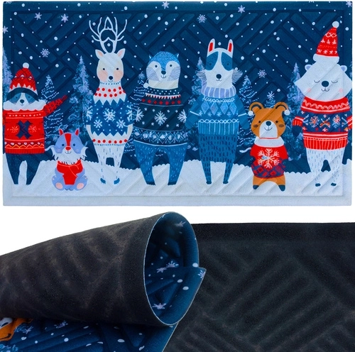 A RUHHY márkájú, 75 × 45 cm-es, stílusos karácsonyi lábtörlő ünnepi hangulatot varázsol az előtérbe, miközben megóvja a padlót a szennyeződésektől. Tartós kivitelének köszönhetően mindennapi használatra alkalmas, könnyen tisztán tartható, és megbízhatóan felfogja a cipőről érkező koszt. A színes téli motívum, a strapabíró kialakítás és az egyszerű karbantartás ideális választássá teszik otthonokba és üzleti terekbe egyaránt.