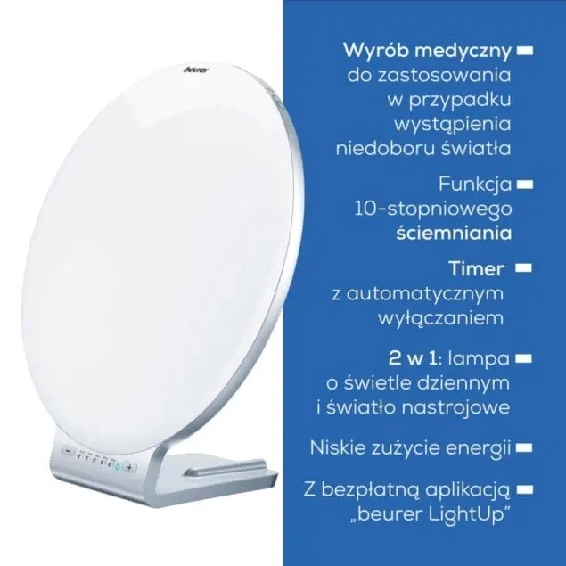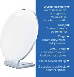 A BEURER TL 100 elegáns fényterápiás lámpa, amely a természetes nappali fényt szimulálja, és segít javítani a hangulatot, a koncentrációt és a reggeli energiaszintet. Az akár 10 000 lux (kb. 10 cm távolságban) elegendő fényt biztosít rövid, hatékony terápiás ülésekhez, ideális például a nap kezdetén.