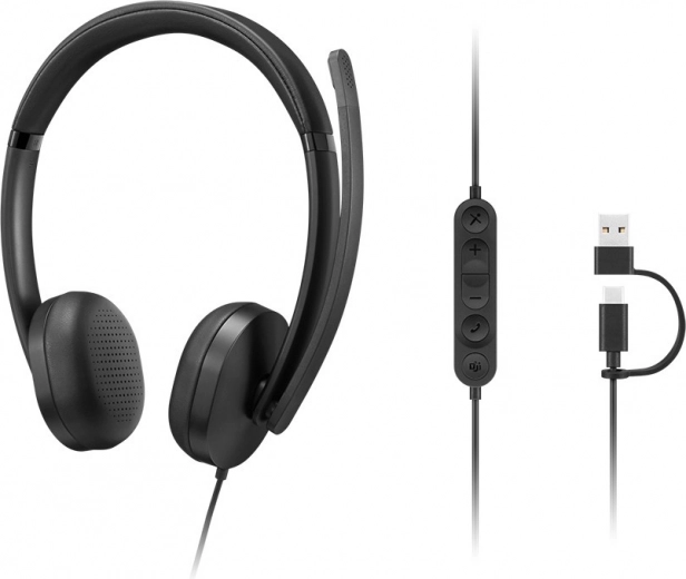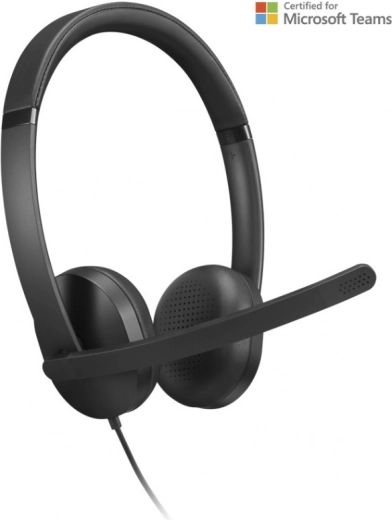 A Lenovo Wired VoIP Headset 5000 professzionális fejhallgató ideális irodába és otthoni munkához. Kínál Microsoft Teams tanúsítást, USB‑C csatlakozást USB‑A adapterrel az egyszerű plug‑and‑play használathoz, könnyű és kényelmes kialakítást egész napos viselethez, valamint AI által támogatott zajszűrést a kristálytiszta hívásokért még zajos környezetben is.