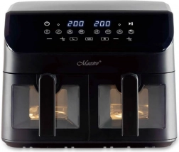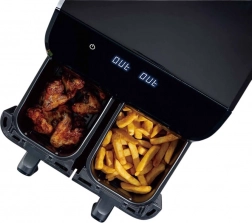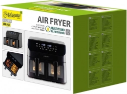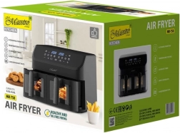 A MAESTRO MR-758 a forró levegő gyors keringetését ötvözi a tágas, kettős, 2×4,5 l-es kosarakkal, így egyszerre készíthet például hasábkrumplit és csirkét – mindkettőt független zónában, saját idő- és hőmérséklet-beállítással. A tapadásmentes felületnek köszönhetően a tisztítás egyszerű, a mindennapos használat pedig kényelmes.