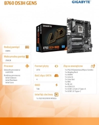Építs modern konfigurációt a GIGABYTE B760 DS3H GEN5 lappal. PCIe 5.0 x16 csatolót kínál a maximális grafikus sávszélességhez, kétcsatornás DDR5 memóriát a nagyobb teljesítményért és alacsony késleltetésért, valamint két M.2 PCIe 4.0 x4 foglalatot villámgyors NVMe SSD-khez.