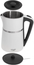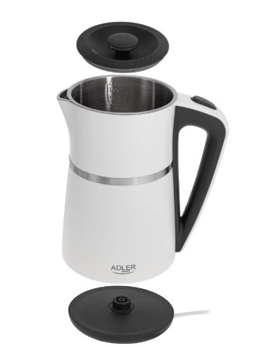 A ADLER AD 1355 vízforraló ötvözi a modern dizájnt, a biztonságot és a 2200 W teljesítményű gyors fűtést. A dupla falnak köszönhetően a külső felület hűvösebb marad, míg a rozsdamentes belső (SUS 304) higiénikus és tartós. A 1,7 l űrtartalom ideális családoknak, az automatikus kikapcsolás és a szárazonfutás elleni védelem pedig nyugalmat ad a mindennapi használat során.
