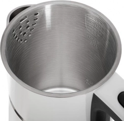 A praktikus felszereltséghez tartozik a 360°-ban forgatható talp a jobb- és balkezesek kényelmére, a levehető fedél a könnyű töltéshez és tisztításhoz, valamint a kábelrekesz a rendezett pultért. A 0,5 l minimális űrtartalom energiatakarékos kisebb mennyiségekhez.