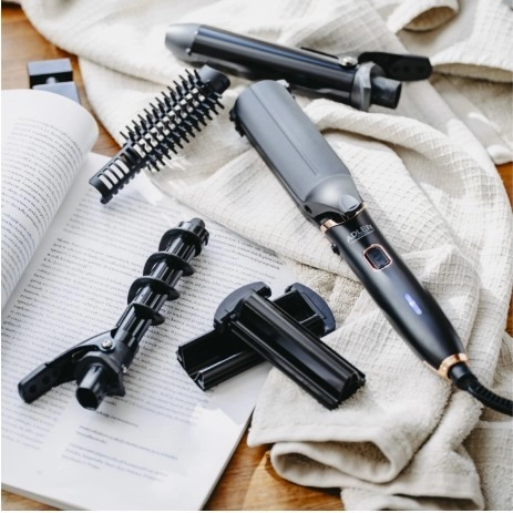 A sima egyenesítéstől a krepp és hullámos frizurákon át egészen a 19 és 32 mm átmérőjű loknikig – egy készlettel lefedheti a hétköznapi és ünnepi stylingot is.