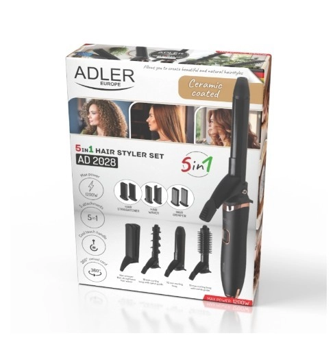 Az ADLER 5 az 1-ben hajformázó készlet mindent egyesít, amire a sokoldalú stylinghoz szüksége van: a tökéletesen egyenes tincsektől a divatos hullámokon át a rugalmas loknikig vagy a kreppelt, texturált hatásig. A kerámia bevonat egyenletesen vezeti a hőt és segít megóvni a hajat a túlmelegedéstől, míg a hűvös végek és a nem túlmelegedő markolat növelik a biztonságot használat közben.
