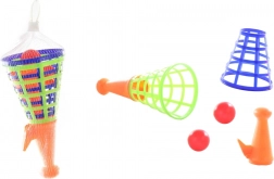 Szórakoztató készlet aktív játékhoz otthon és a szabadban! A műanyag kilövős kosárkák praktikus hálóban érkeznek, 2 kosárkát és 2 labdát tartalmaznak. Egyszerű kezelhetőség, könnyű kivitel és kb. 20 × 10 × 10 cm-es méret biztosítják a kényelmes használatot. Ideális 3 éves kortól a koordináció és a reflexek fejlesztésére.