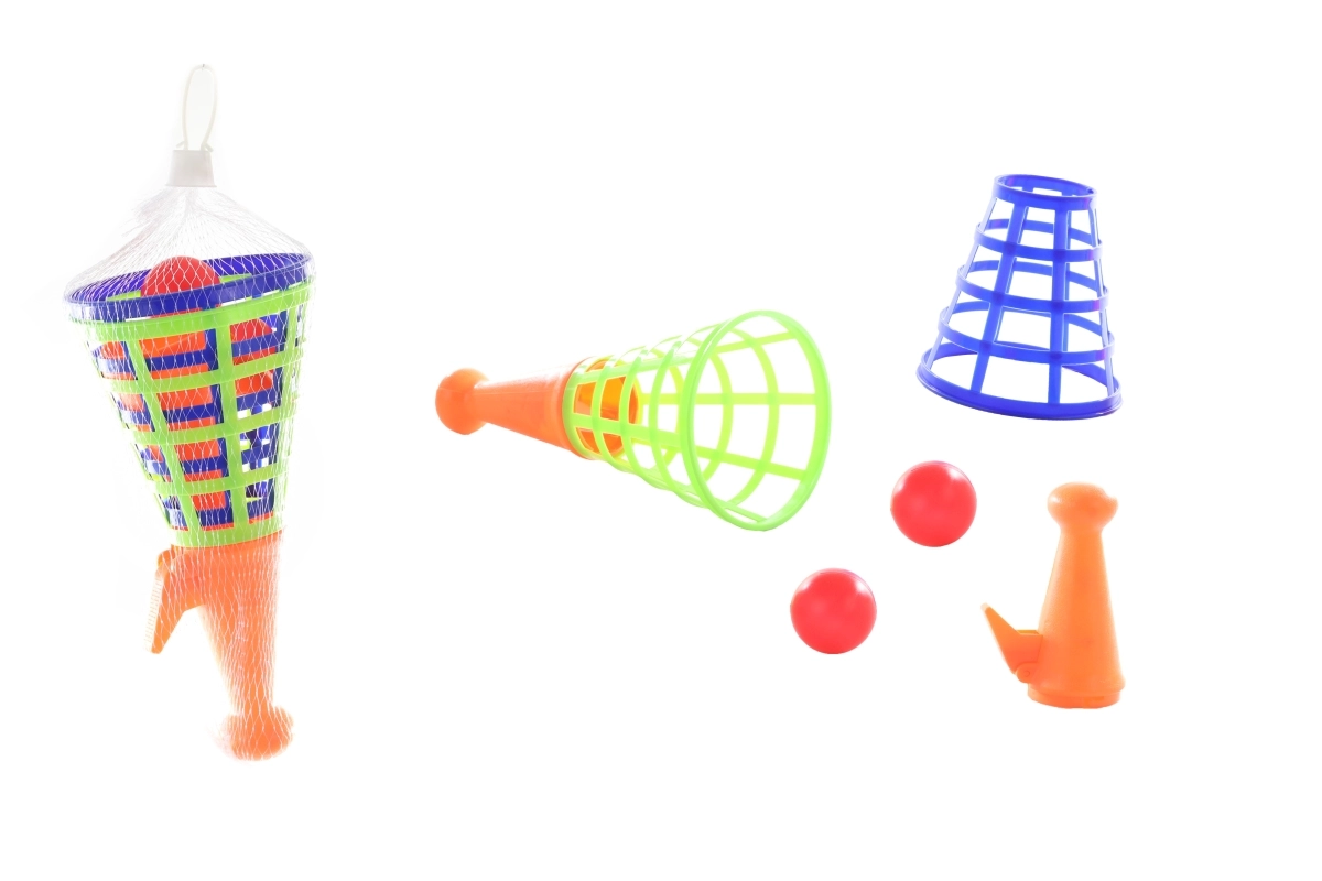 Fedezze fel a nagyszerű családi szórakozást a műanyag kilövős kosárkákkal. A könnyű ravasznyomásnak köszönhetően a labda kilő, a másik játékos pedig elkapja a kosárkába. A könnyű és tartós anyag biztonságos a gyerekek számára, és alkalmas beltéri és kültéri játékra egyaránt.
