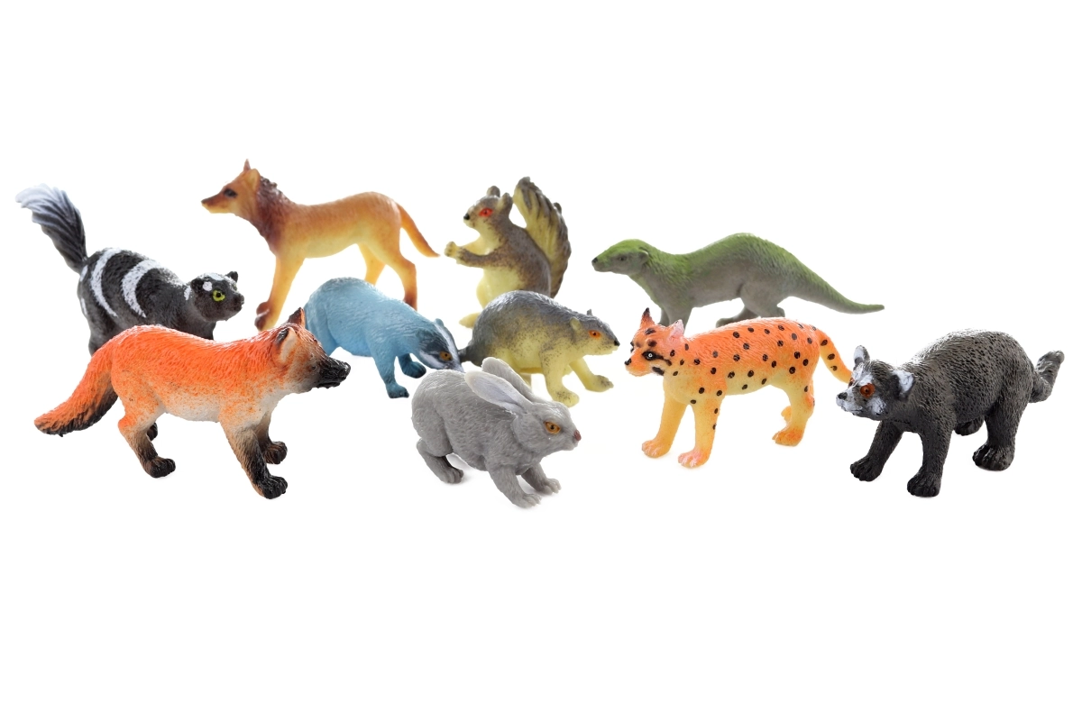A készlet közkedvelt erdei lakókat tartalmaz – rókát, nyulat, hiúzt, mókust, borzot, farkast, vidrát, hódot, mosómedvét és borzskunkot. Minden figura tartós műanyagból készült, kompakt méreteinek köszönhetően tökéletes otthoni játékhoz, utazáshoz és didaktikai tevékenységekhez.