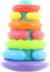 Ez a klasszikus karikás rakosgató remek első játék a finommotorika, a szem–kéz koordináció és a logikus gondolkodás fejlesztésére. A gyerekek méret szerint felrakhatják a karikákat, színek szerint válogathatnak és felfedezhetik az alapvető egymásra rakás elvét.