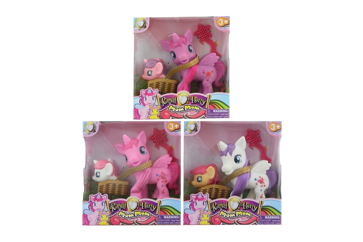 Aranyos készlet egy nagy és egy kicsi egyszarvúval kosárkában, amely örömet szerez minden mesekedvelő gyermeknek. Nagy egyszarvú fésülhető sörénnyel, fésű a csomagban és könnyű kosárka az egyszerű hordozáshoz. Ideális ajándék 3 éves kortól.