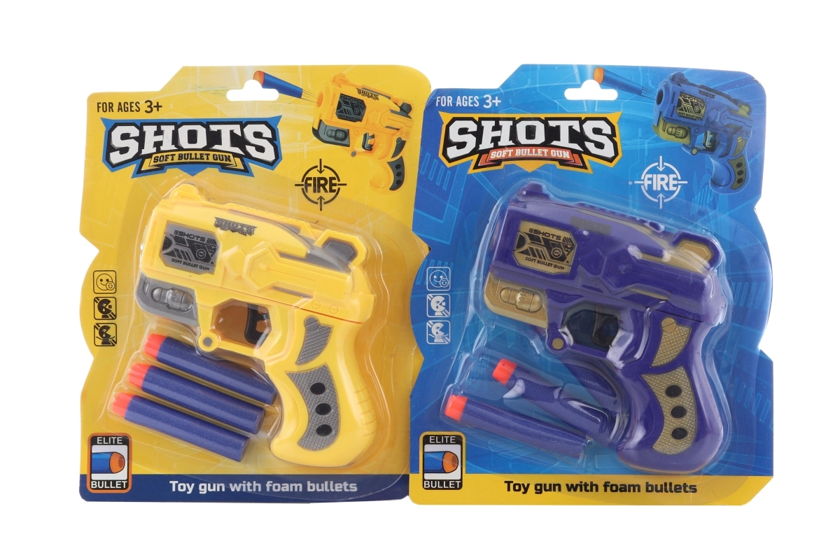 Ez a könnyű, műanyag hablövedékes pisztoly remek választás azoknak a gyerekeknek, akik szeretik az akciót kockázat nélkül. Körülbelül 12 × 10 cm-es kompakt mérete miatt könnyen fogható és kényelmesen kezelhető. A csomag 3 puha hablövedéket tartalmaz, amelyek kíméletesek és biztonságosak a gyerekjátékhoz.