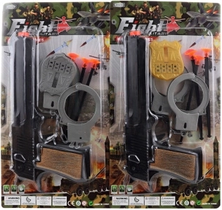 - Pisztoly tapadókorongos lövedékekhez, bilincs, jelvény, 3 db lövedék