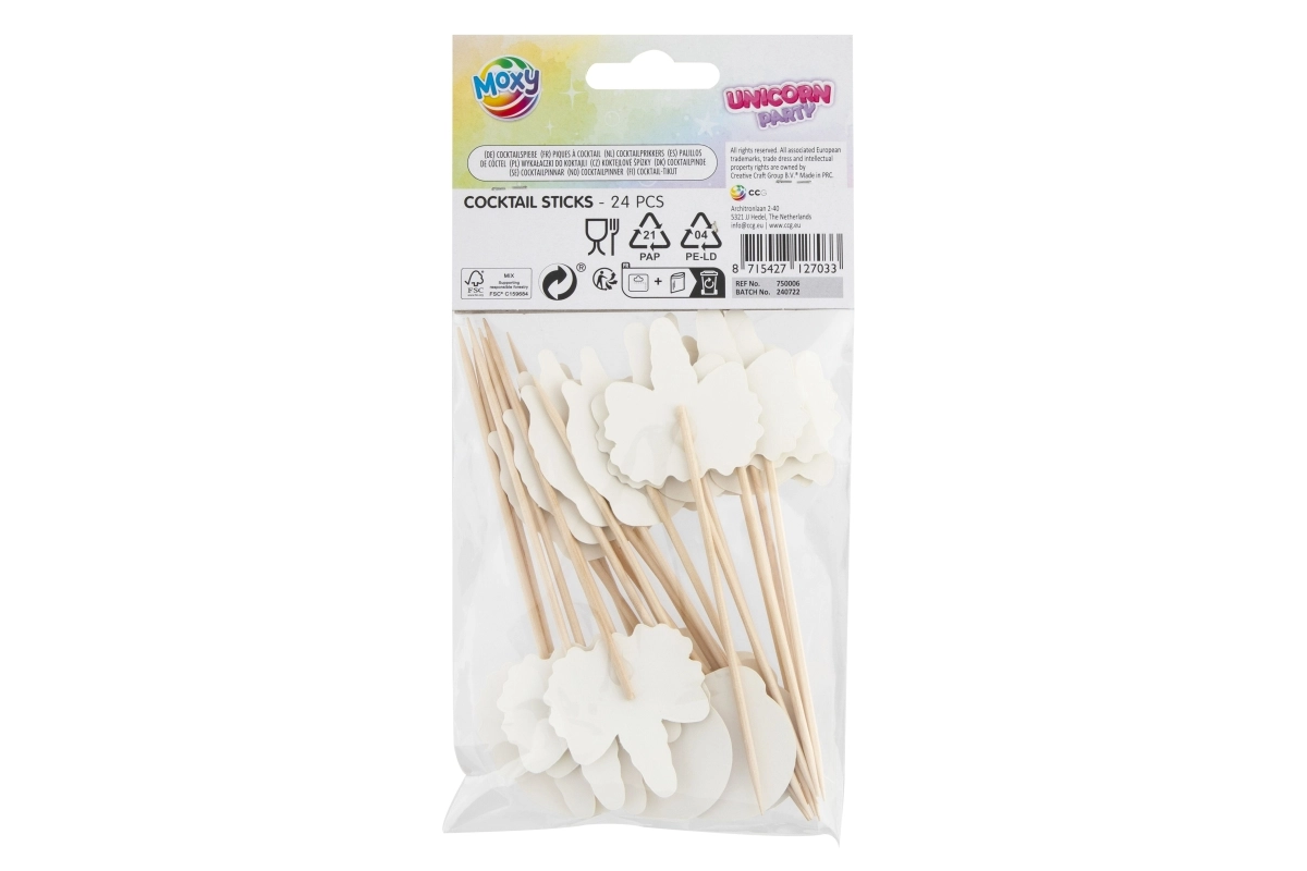 Stílusos, unikornis motívumos koktélpálcikák, amelyek mesés megjelenést kölcsönöznek a vendégváró falatoknak. A fa pálcika és a papír dísz tökéletes egyfalatok, desszertek és italok tálalásához. Egy csomagban 24 darab található, így nagyobb ünnepségre is elegendő.
