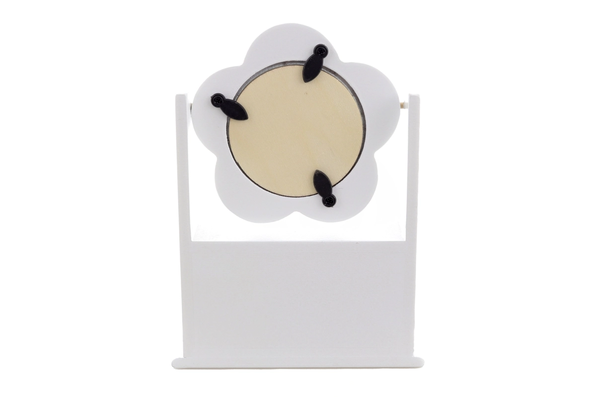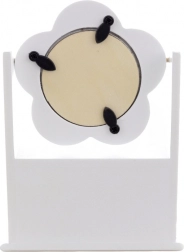 A virág formájú dekoratív tükör segít a kiegészítők felpróbálásában, és egyben bájos megjelenést kölcsönöz az ékszerdoboznak.