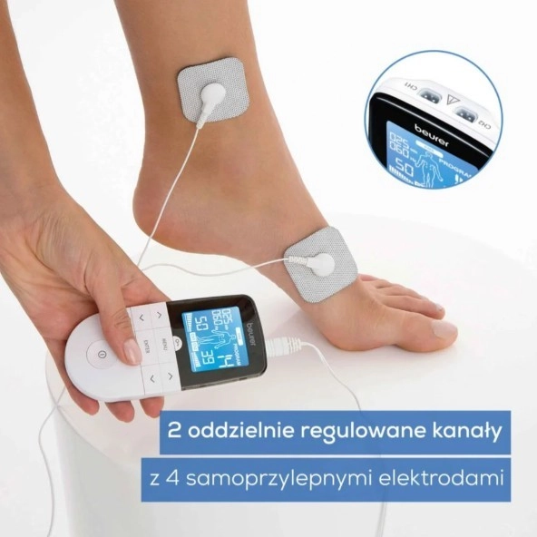 A multifunkciós BEURER EM 49 elektrostimulátor ötvözi a TENS-t a gyógyszermentes fájdalomcsillapításhoz, az EMS-t az izmok edzéséhez és regenerációjához, valamint a relaxáló masszázst. 64 előre beállított programot és 6 felhasználói üzemmódot kínál, a frekvencia, az impulzusszélesség és a be-/kikapcsolási idők állítási lehetőségével. A 2 független csatornának, az elektródapozíció-jelzésnek és a Kedvenc program funkciónak köszönhetően a kezelés gyors és intuitív. Orvostechnikai eszköz.