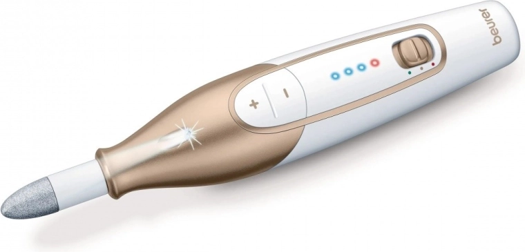 A csomag része 10 kiváló minőségű feltét (zafír és filc) a körmök reszeléséhez, rövidítéséhez, simításához és polírozásához, valamint egy porvédő burkolat a higiénikus működéshez. A sebesség 3 fokozatban állítható igény szerint, továbbá automatikus kikapcsolás 20 perc után és töltésjelző is rendelkezésre áll. A feltétek cukorbetegek számára is alkalmasak.