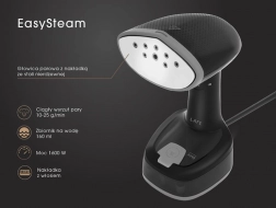 A függőleges gőzölés funkció lehetővé teszi zakók, ruhák vagy függönyök közvetlen, vállfán történő igazítását. Az összecsukható fogantyú és a kompakt méret nagyszerű útitárssá teszi az EasySteamet, míg a 160 ml-es víztartály elegendő több ruhadarab gyors felfrissítéséhez.