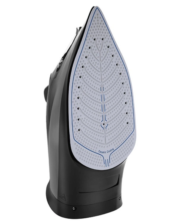 A tartós kerámia talp egyenletes hőelosztással és számos gőznyílással kíméletes és hatékony gyűrődés-eltávolítást biztosít tapadás nélkül.