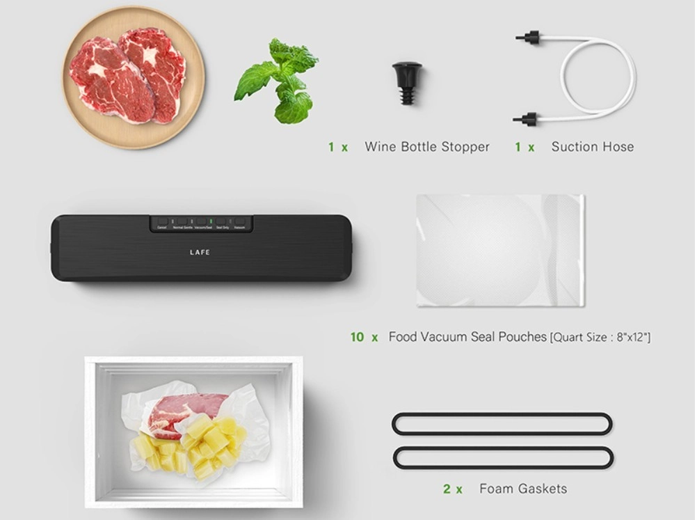 A LAFE VAC & Seal vákuumozó hegesztő praktikus segítőtárs minden konyhában. A 250 W teljesítménynek köszönhetően gyorsan felmelegszik, 6 l/perc kapacitású vákuumpumpája pedig megbízhatóan kiszívja a levegőt a tasakokból, jelentősen meghosszabbítva a hús, hal, sajt, zöldség és készételek eltarthatóságát. Az akár 30 cm széles hegesztés nagyobb adagok csomagolását is lehetővé teszi.