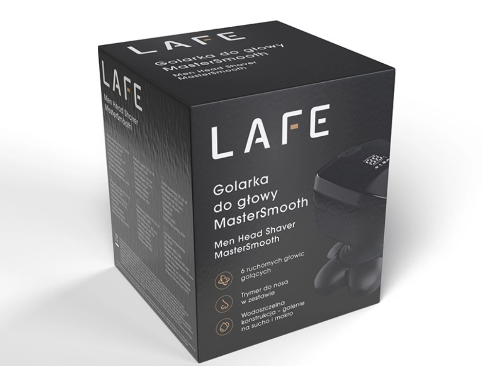 A Lafe MasterSmooth borotva azoknak a férfiaknak készült, akik a tökéletesen sima fejbőrt kedvelik. A hat mozgó borotvafej pontosan követi a fej íveit, és egyenletes, gyors és kíméletes borotválást biztosít irritáció nélkül. Az IPX6 vízállóság lehetővé teszi a száraz és a nedves, habbal vagy géllel történő borotválást, valamint a könnyű tisztítást folyó víz alatt. A 600 mAh-s akkumulátor akár 60 perc üzemidőt kínál 90 perces töltés után. A csomagban orrszőrnyíró is található a teljes körű ápoláshoz.