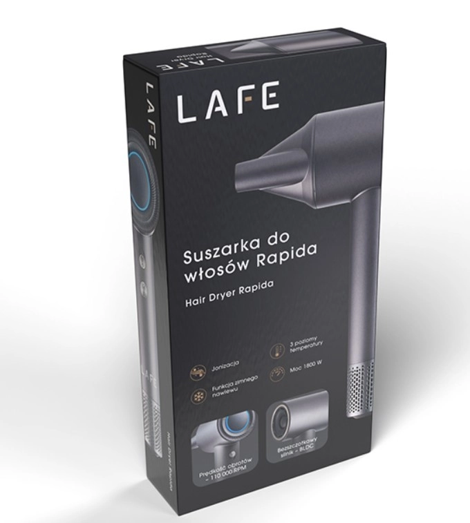 A LAFE Rapida hajszárító a legújabb technológiát kényelmes kezeléssel ötvözi a gyors és precíz hajformázásért. A nagy teljesítményű, kefenélküli BLDC motor magas légáramot, alacsonyabb zajszintet és hosszú élettartamot nyújt, míg az ionizáció minimalizálja a göndörödést, és sima, ragyogó megjelenést kölcsönöz a hajnak.
