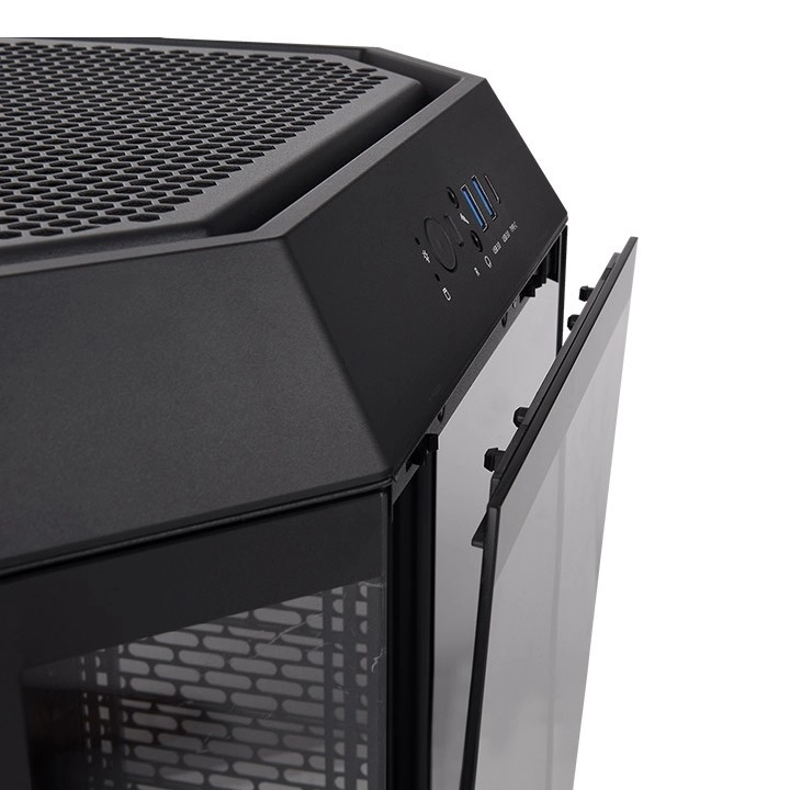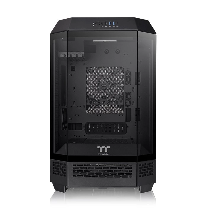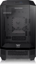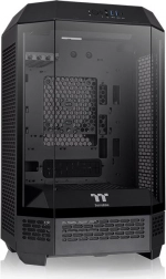 A stílusos, fekete színű THERMALTAKE The Tower 300 mini toronyház az ikonikus, függőleges kialakítást három edzett üveg panellel és két csendes CT140 ventilátorral ötvözi. Kiváló légáramlást kínál, helyet a nagy teljesítményű komponenseknek és látványos RGB megjelenítést az egész konfigurációnak.