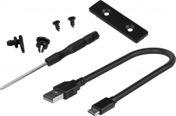 A csomag tartalma: rövid USB‑A – USB‑C kábel, csavarhúzó és szerelési kiegészítők a gyors, problémamentes telepítéshez.
