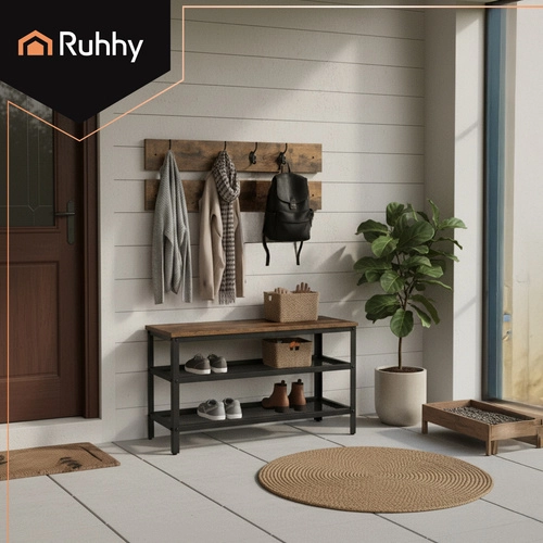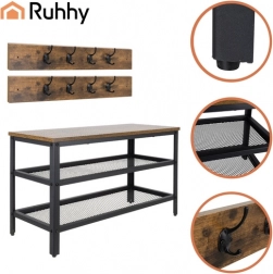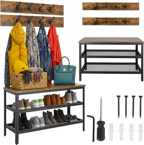 Stílus, rendre utaltság és funkcionalitás egyben. Ez a 2 az 1-ben rendszerező cipőtartót, padot és fogast egyesít kompakt megoldásban, ideális előszobába, közlekedőkbe és gardróbba. A légies rácspolcok támogatják a levegőáramlást, csökkentve a nedvességet és a lábbeli szagát, míg a porszórt acélkeret hosszú élettartamot biztosít.