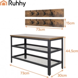 A felső barna MDF lap meleg akcentust ad a térnek, és kényelmes helyet biztosít a le- és felüléshez. A kompakt 73 × 44 × 30 cm méreteknek köszönhetően a kisebb helyekbe is jól illeszkedik. Az összeszerelés kb. 15 perc alatt elvégezhető – a csomagban teljes szerelőkészlet található, csavarhúzóval és imbuszkulccsal együtt.