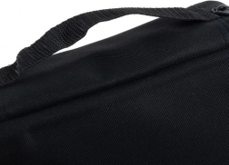 Erős textil, megerősített varrások, masszív cipzár és praktikus fül a kényelmes hordozáshoz.