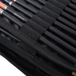 Tartós tok gumis rögzítőkkel, amelyek biztonságban és tökéletes rendben tartják a ceruzákat otthon és útközben.