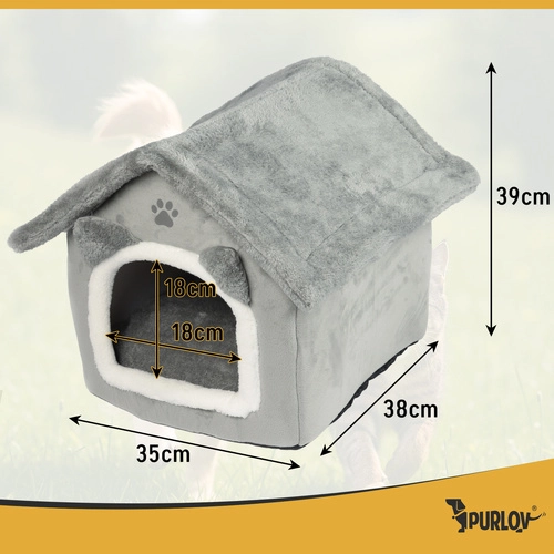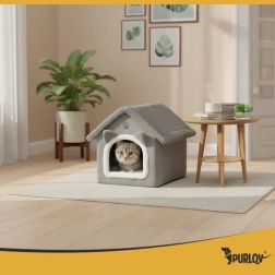 Hangulatos menedéket keres a cicájának? A Purlov házikó-fekhely puha plüss környezetet, kivehető párnát a könnyű tisztításhoz, cipzárral levehető tetőt a gyors rendrakáshoz és csúszásmentes aljat a biztonságért kínál. Az elegáns szürke dizájn bármely belső térbe remekül illik.