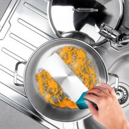 Az erős falak és a minőségi ötvözet hosszú élettartamot, korrózióállóságot és könnyű tisztítást biztosítanak. A matt felület fényes felső peremmel elegáns megjelenést kölcsönöz.