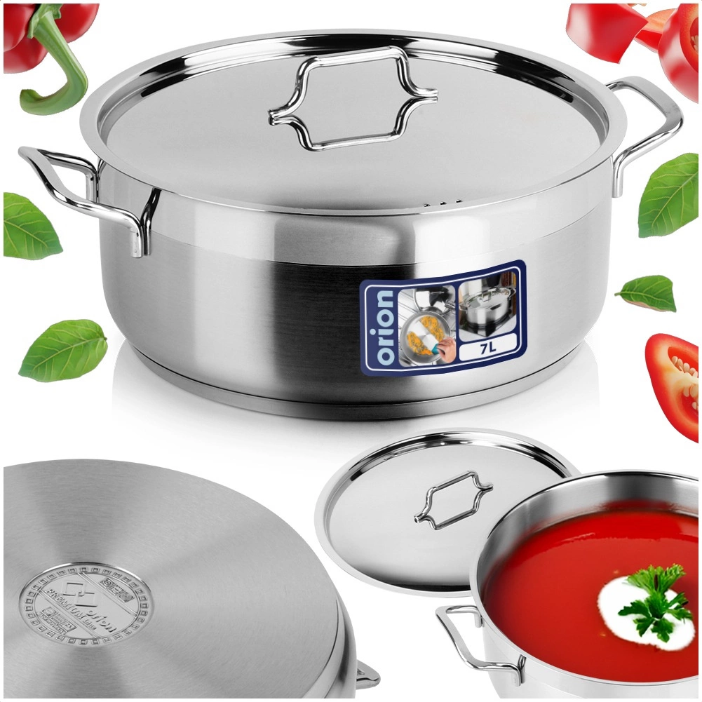 Prémium Anett rozsdamentes fazék 7 l mindennapi főzéshez és pároláshoz minden tűzhelytípuson, beleértve az indukciót is. Masszív falakkal, többrétegű akutermikus aljjal az egyenletes hőelosztásért, és minőségi rozsdamentes acél fedővel szállítva. Mosogatógépben mosható, ideális otthoni és professzionális konyhákba.
