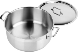 A praktikus rozsdamentes acél fedő megtartja a hőt és a nedvességet, a kényelmes oldalsó fogantyúk biztos fogást adnak, a jól formázott edénytest pedig megkönnyíti a tisztítást. A fazék minden főzőlaphoz beleértve az indukciót is alkalmas, és mosogatógépben mosható.