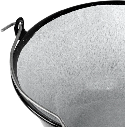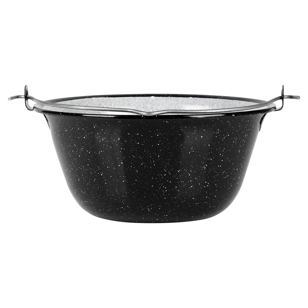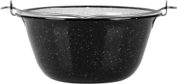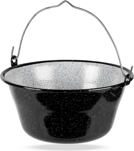 A praktikus függesztő fül biztonságos felakasztást biztosít az állványra és kényelmes hordozást. A bogrács remek társ kerti összejövetelekhez, kempingezéshez és hétvégi tűz melletti főzéshez. A zománc apró gyártási egyenetlenségei (felrakódások, egyenetlen mintázat) természetesek, és nem befolyásolják a minőséget vagy a funkcionalitást – a hagyományos megmunkálást hangsúlyozzák.
