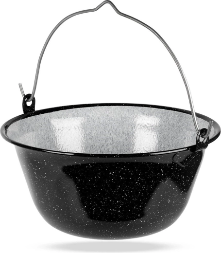 A hagyományos zománcozott bogrács 36 cm átmérővel és 9,5 l űrtartalommal alkalmas főzésre, párolásra, sütésre és pirításra nyílt tűz fölött, grillen vagy háromlábon. A minőségi, vastag falú acél fekete-fehér zománcozással hosszú élettartamot és könnyű karbantartást biztosít. A bográcsban készített ételek összetéveszthetetlen ízűek és illatúak.