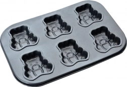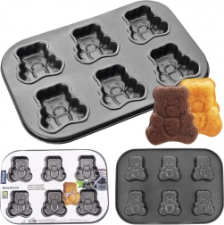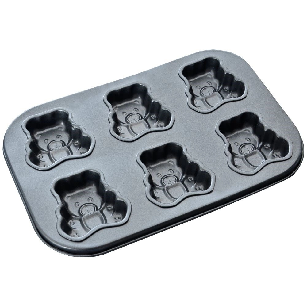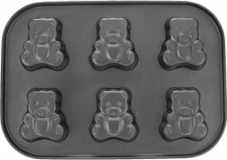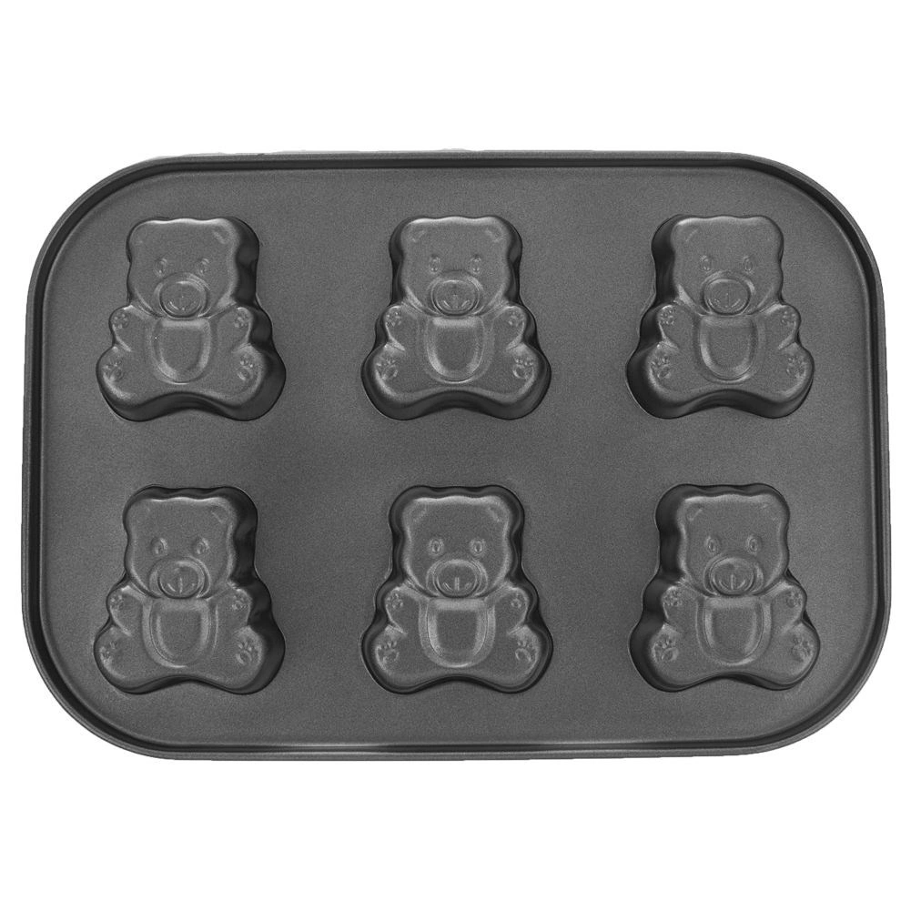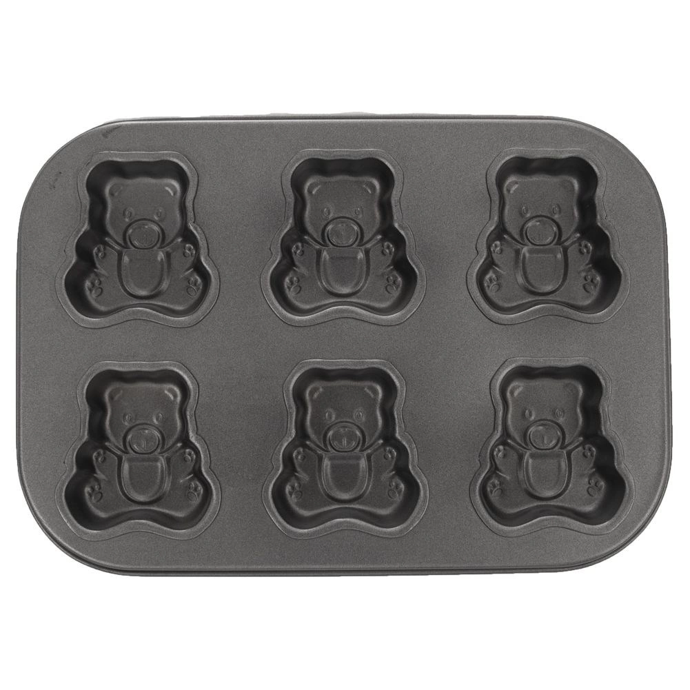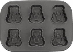 Ez a minőségi forma 26,5 × 18,5 × 2,5 cm méretű, és 6 részletgazdagon formált mackót készít kb. 6 × 5,5 cm-es méretben. A tapadásmentes felületnek köszönhetően a tészta nem ragad, a kész darabok pedig sérülés nélkül, könnyedén kifordíthatók. Tökéletes a közkedvelt, töltött sült mackókhoz vagy az egyszerű piskótatésztához.