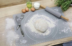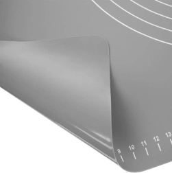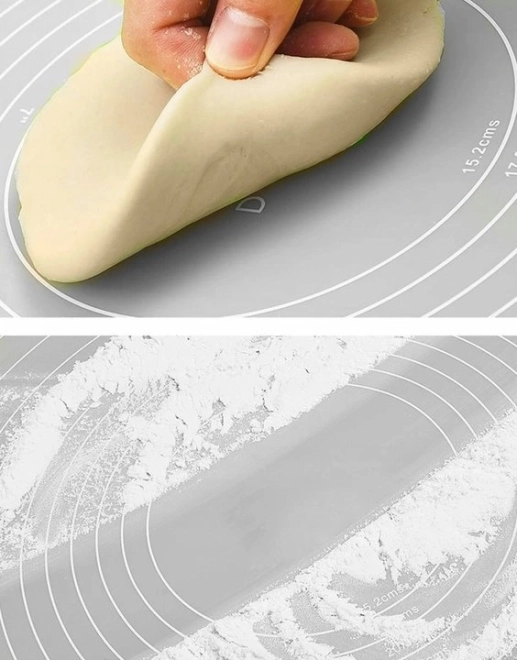 A szilikon alátét tisztán tartja a munkapultot. A munka végeztével elég leöblíteni, majd könnyen feltekerni a helytakarékos tároláshoz.