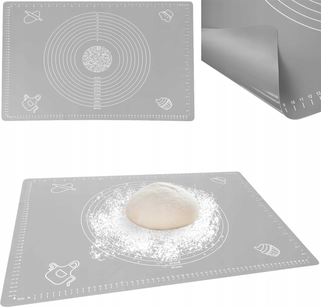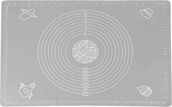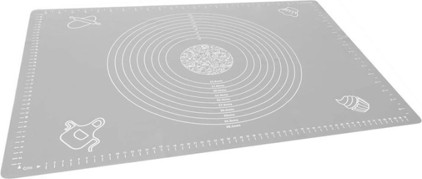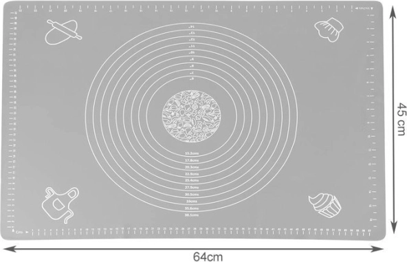 Ez a szilikon alátét sütéshez ideális segítőtárs a konyhában. 64x45 cm-es méretének köszönhetően elegendő helyet biztosít különféle tészták és sütemények előkészítéséhez. Az alátét praktikus hosszanti és kör alakú mérőskálákkal van ellátva, amelyek megkönnyítik az alapanyagok előkészítését és mérését.