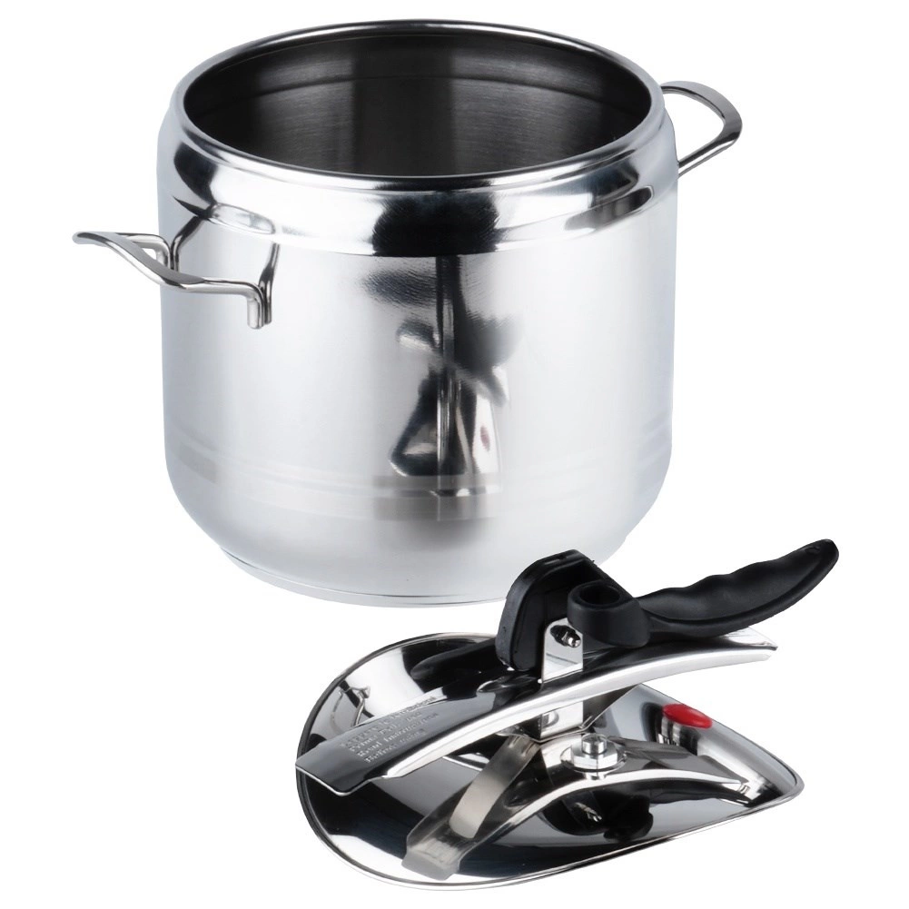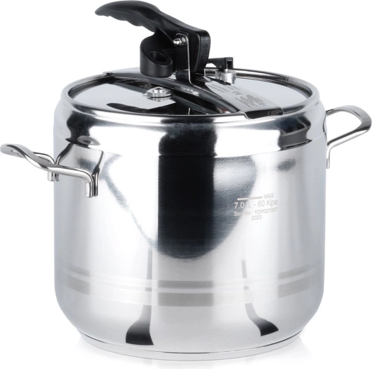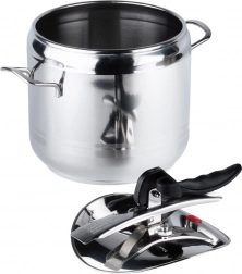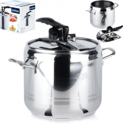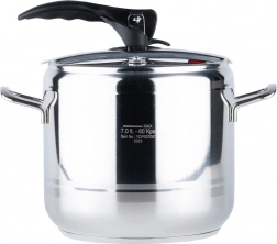 Praktikus, 7 literes rozsdamentes acél kukta a gyors és energiatakarékos főzéshez. A nyomás alatti főzésnek köszönhetően lerövidíti az elkészítési időt, energiát takarít meg, megőrzi az ízeket és a tápanyagokat, és biztonságos működést kínál két biztonsági szeleppel és masszív felépítéssel, 3 rétegű aljjal. Minden típusú tűzhelyhez alkalmas, beleértve az indukciót is.