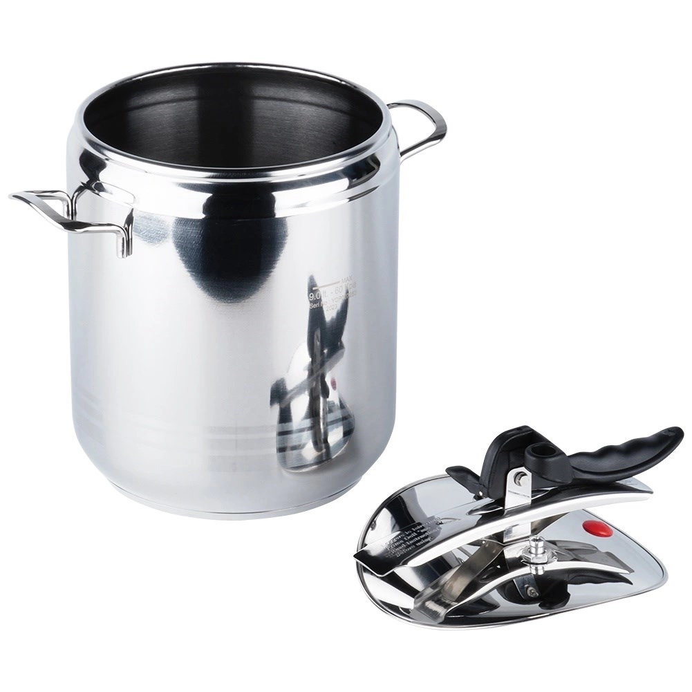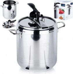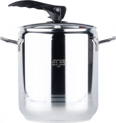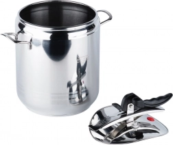 Masszív kivitel minőségi rozsdamentes acélból, 3 rétegű szendvics alj az egyenletes hőelosztáshoz és a nyomásszabályozás lehetősége kiváló eredményeket hoz gáz-, elektromos, üvegkerámia, halogén és indukciós főzőlapokon is. A fazék könnyen kezelhető, és a két biztonsági szelepnek valamint a megbízható zárómechanizmusnak köszönhetően nyugodtan főzhet. A test alkalmas mosogatógépbe (a fedő kézi mosását javasoljuk).