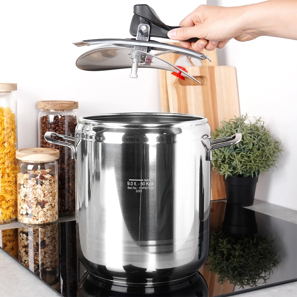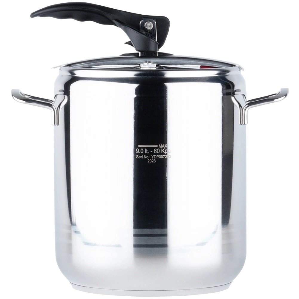 A Profi 9 l gyorsfőző megbízható segítőtárs a mindennapi főzéshez. Magas nyomás alatt főz, így jelentősen lerövidíti az elkészítési időt, miközben energiát és tápanyagokat takarít meg. A teljes űrtartalom 9 l, ajánlott munkatérfogat nyomás alatti főzéshez körülbelül 2/3, ami biztonságos és hatékony működést garantál.