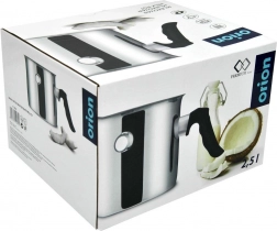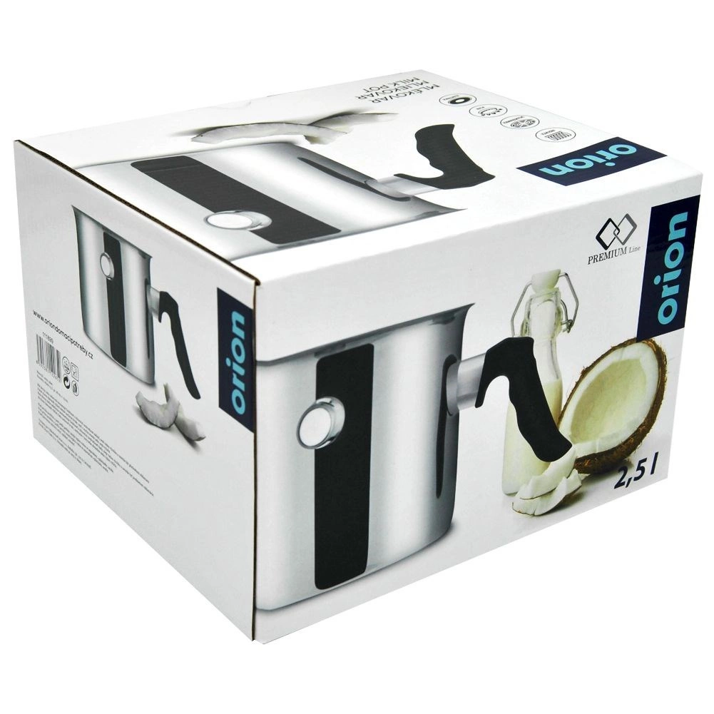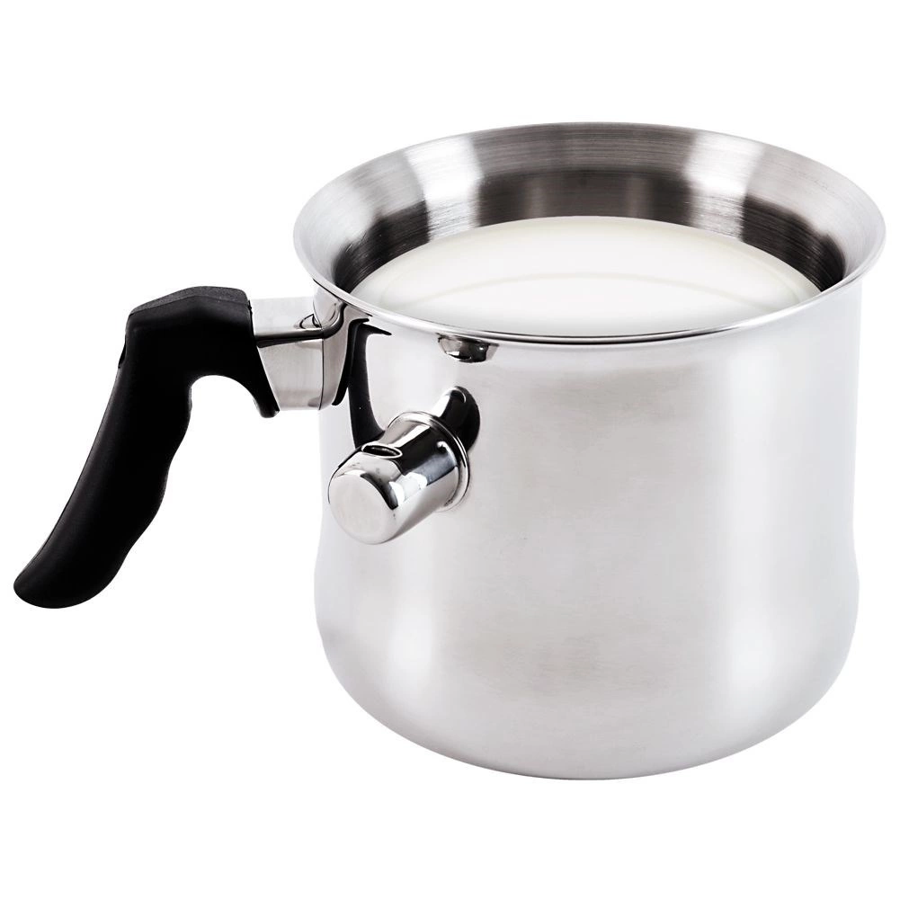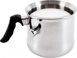 Praktikus, 2,5 l űrtartalmú rozsdamentes tejforraló vízfürdős köpennyel és sípós fedővel, amely megakadályozza a tej vagy mártások leégését. Alkalmas minden tűzhelytípushoz, beleértve az indukciót is, ergonomikus, hőálló fogantyúval rendelkezik, és könnyen tisztítható, beleértve a mosogatógépben való tisztítást is.