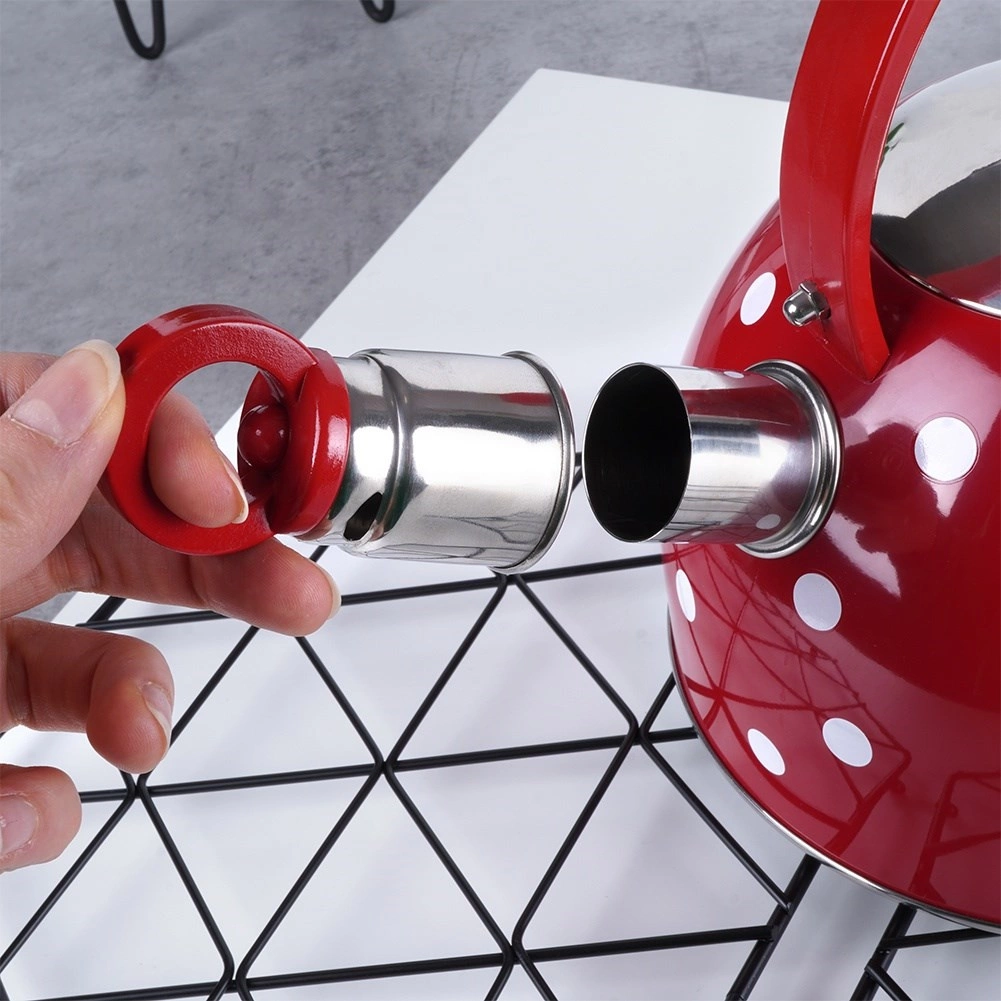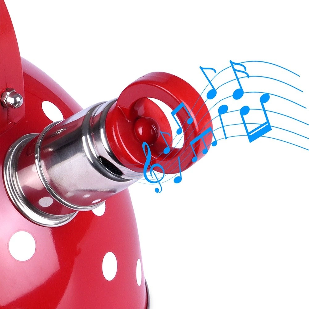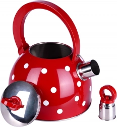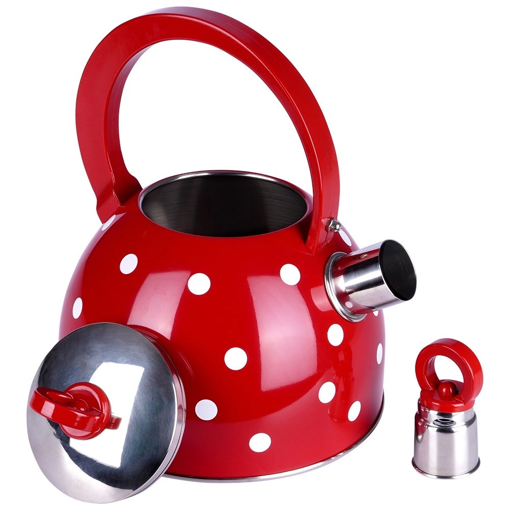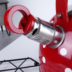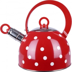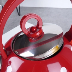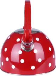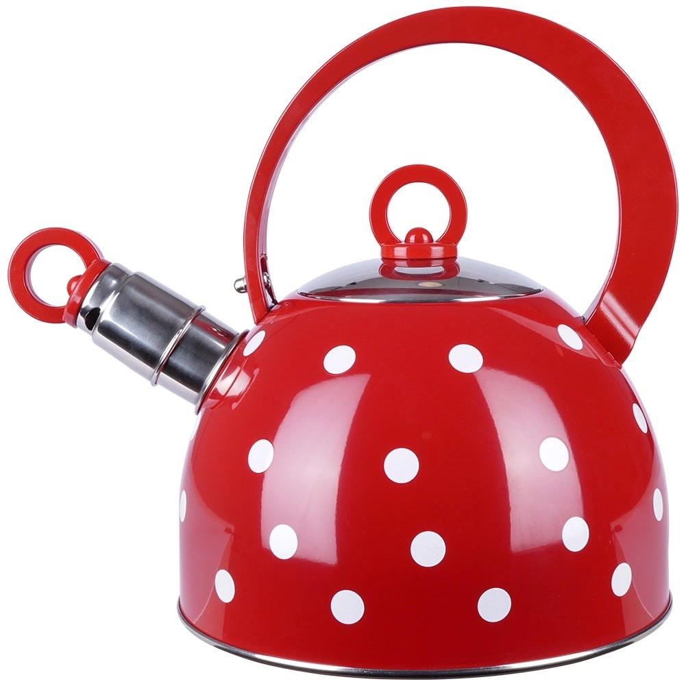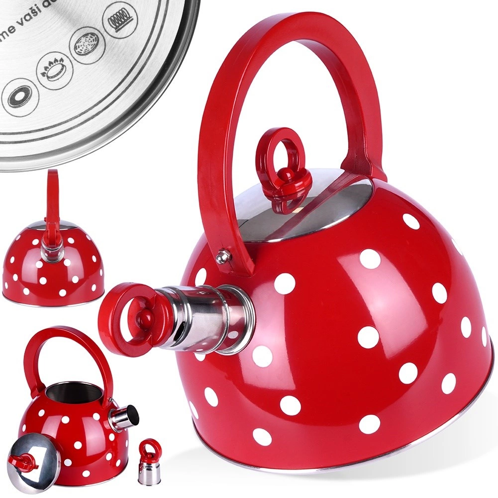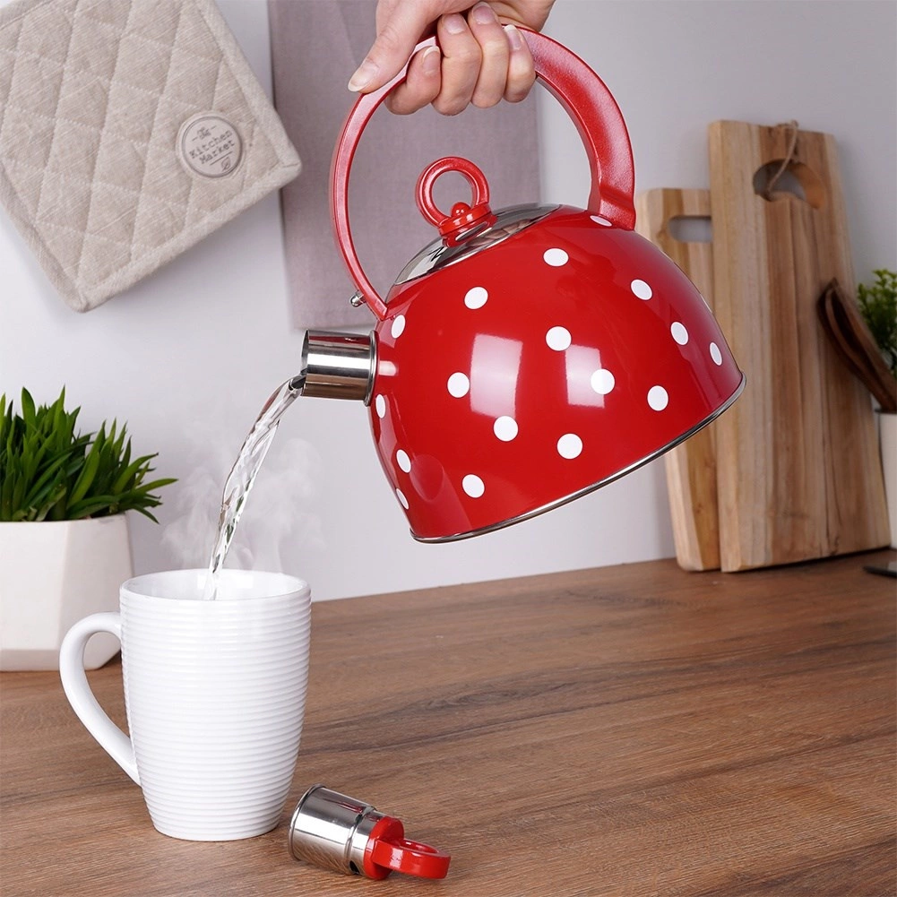 A piros kivitel fehér pöttyökkel örömtelivé teszi a mindennapi vízforralást, és egyedi bájt kölcsönöz a konyhának.