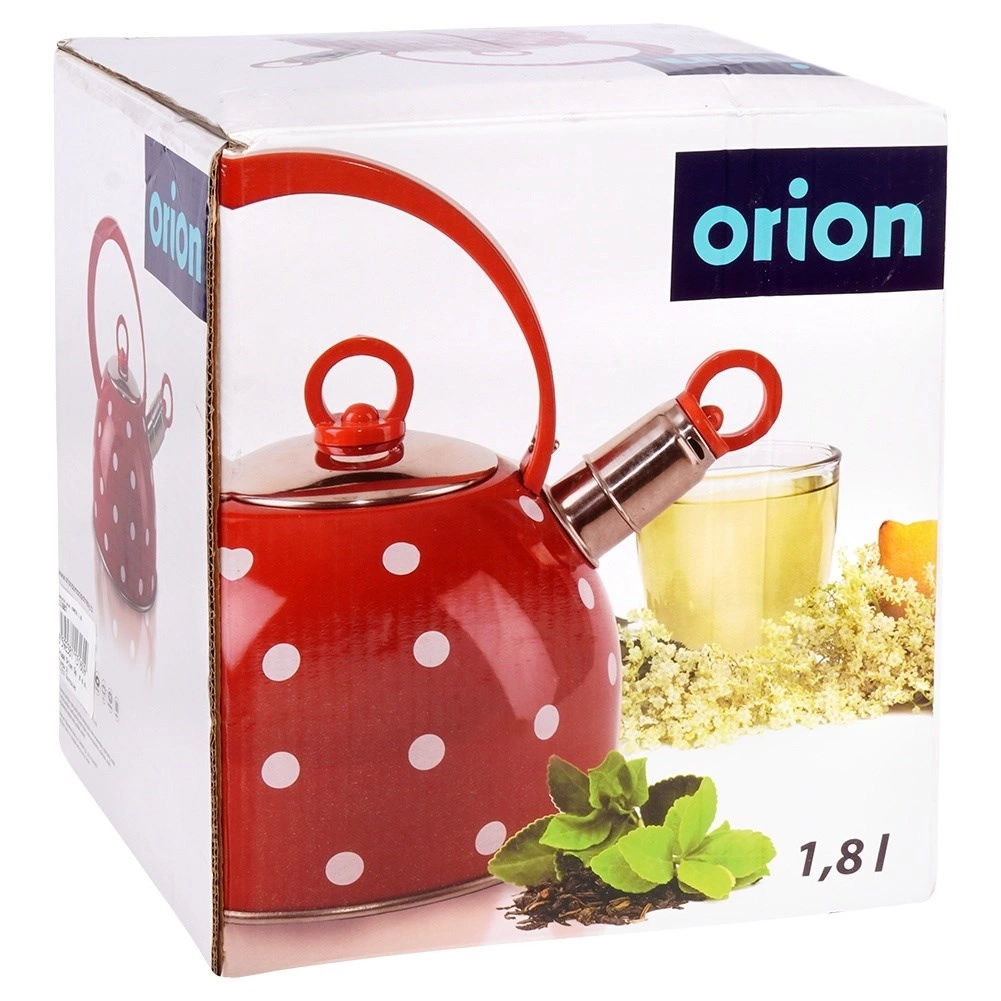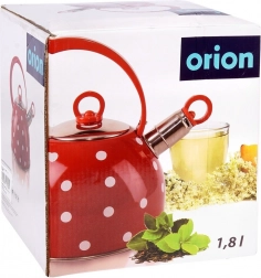 Fedezze fel az ORION elegáns kannáját a népszerű retro stílusban. A minőségi rozsdamentes acél gyors felmelegedést és hosszú élettartamot biztosít, a síp megbízhatóan jelzi a forráspontot, a levehető kiöntőzár pedig megkönnyíti a kiöntést. A kanna ideális a mindennapi tea-, kávé- és más forró italok készítéséhez.